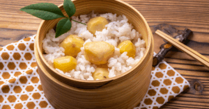 栗のアク抜きをした後、もしくは剥き栗を米と炊く際に塩麹を加えることで、栗本来の甘さが引き立ち、酵素の働きで消化に優しいご飯になります。